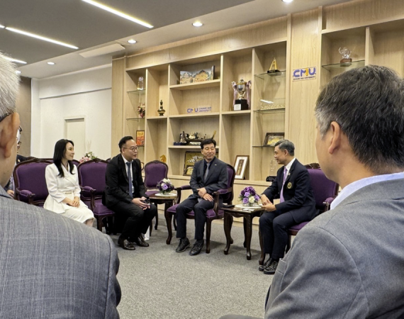 The meeting, part of the One-On-One Meeting activity, took place on Wednesday, January 22, 2025, at the M.L. Pin Malakul Lounge in CMU’s Office of the University Building. Discussions focused on strengthening and advancing sustainable collaborations between CMU and Dong-A University.