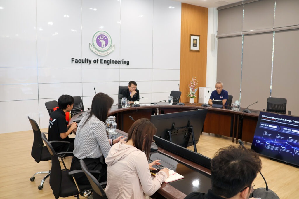 The meeting was chaired by Associate Professor Dr. Thongchai Fongsamootr, Dean of the Faculty of Engineering, who welcomed representatives from GoodWe from both Thailand and the People’s Republic of China, followed by an exchange of information to foster mutual understanding.